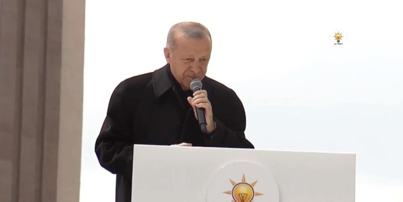 14 Mayıs'ta yeni dönemin müjdelerini vereceklerini söyleyen Erdoğan, "Buradaki katılımı görünce mutluluğum daha da arttı. Salonun içerisi tıklım tıklım dolu, sizler de burada kaldınız. Şimdi de beyannamemizi açıklamak için müsaade istiyorum. Gümbür gümbür 14 Mayıs'a ilerliyoruz. Rabbim yardımcımız olsun." dedi.