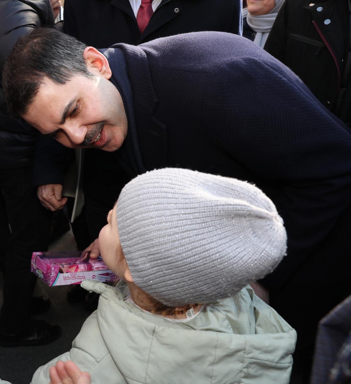 Bir çocuğa oyuncak kepçe hediye eden Kurum, "Bununla İstanbul halkının sorunlarını çözmek için çalışacaksınız. Metrolar yapacaksınız" dedi.