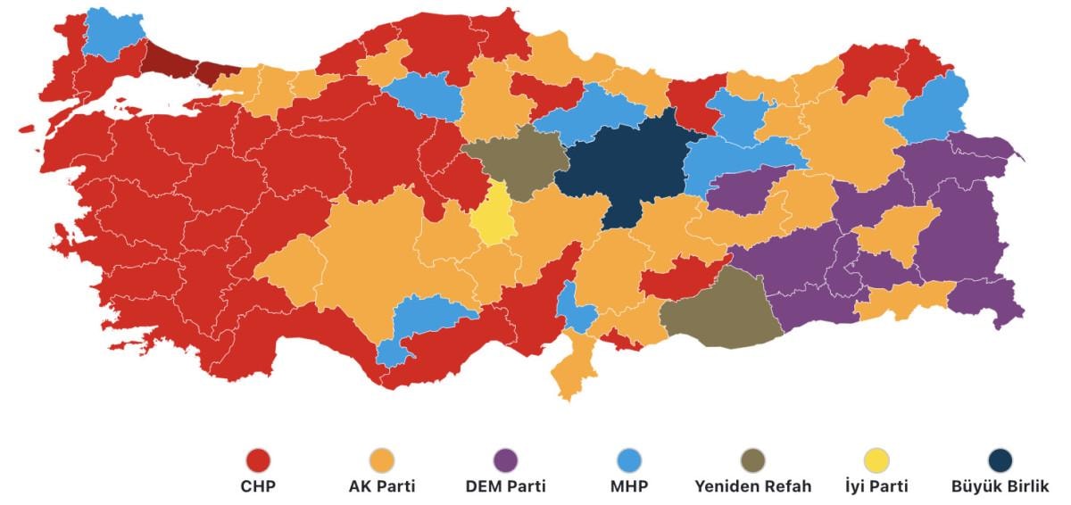 Yüksek oy katılımının olduğu seçimde, birçok il ve ilçe belediyeleri el değiştirdi.