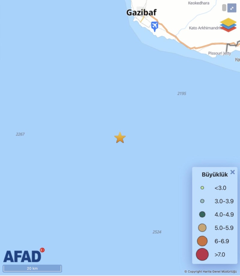 Akdeniz'de meydana gelen depreme ilişkin açıklamada bulunan AFAD, depremin büyüklüğünü 4.7 olarak açıkladı.