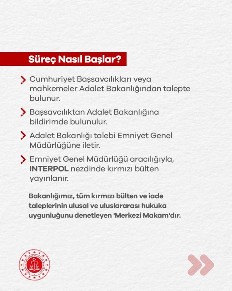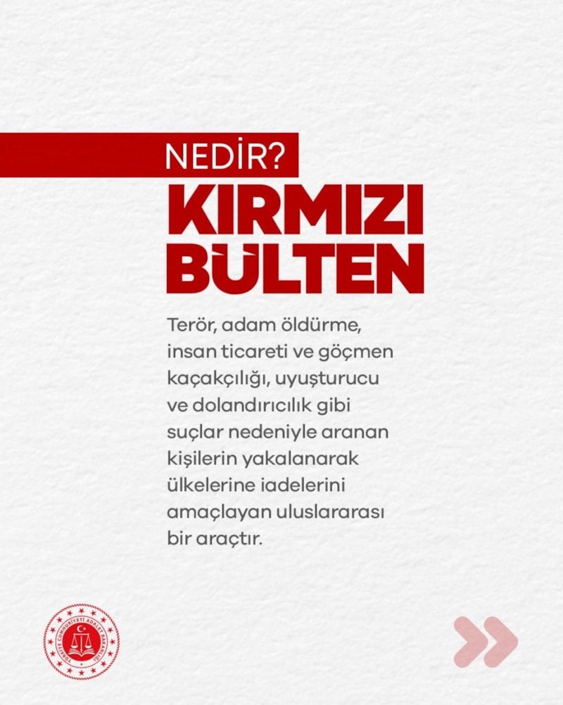 Göreve geldiği andan itibaren hızla çalışmalara başlayan Adalet Bakanı Akın Gürlek ise "kırmızı bülten"le aranan suçlulara ilişkin paylaşım yaptı.
