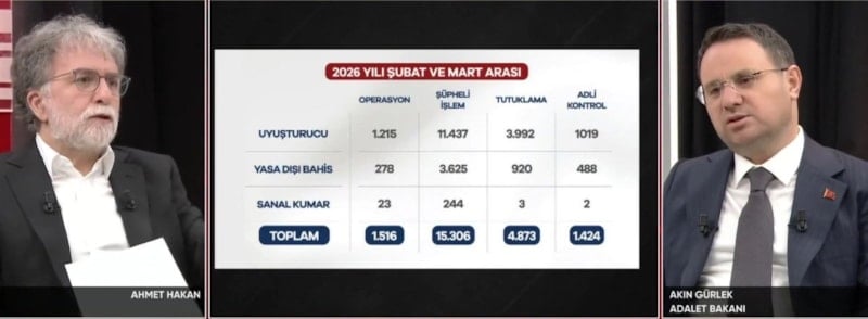 CNN Türk ekranlarında Ahmet Hakan'ın konuğu olan Bakan Gürlek, ekrana gelen tabloyu göstererek şunları söyledi: