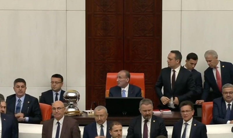 Akın Gürlek'in yemini sırasında, CHP'li vekiller kürsüye doğru Anayasa fırlattı.