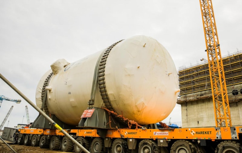 Reaktör bölmesinin açık üst kısmından Open-Top teknolojisi kullanılarak gerçekleştirilen kurulum için ağır, kendinden tahrikli bir paletli vinç kullanıldı.