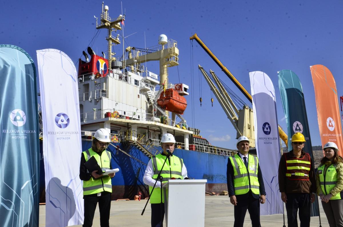 Akkuyu Nükleer A.Ş. Genel Müdürü Sergey Butckikh, Akkuyu NGS Doğu Kargo Terminaline 100. yük gemisinin yanaşması vesilesiyle düzenlenen törende, deniz yoluyla gönderilen 100. kargo sevkiyatının, proje için önemli bir dönüm noktası olduğunu söyledi.