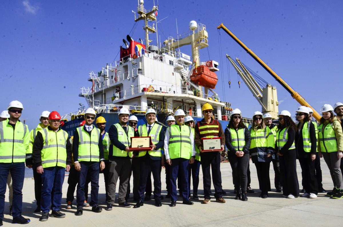 Konuşmaların ardından Genel Müdür Sergey Butckikh, geminin başarılı bir şekilde limana varışı ve yükün teslimi dolayısıyla Liman Müdürü Okan Bozkurt ile gemi kaptanı Wen Zhiqiang'a plaket verdi, çalışanlarla fotoğraf çektirdi.