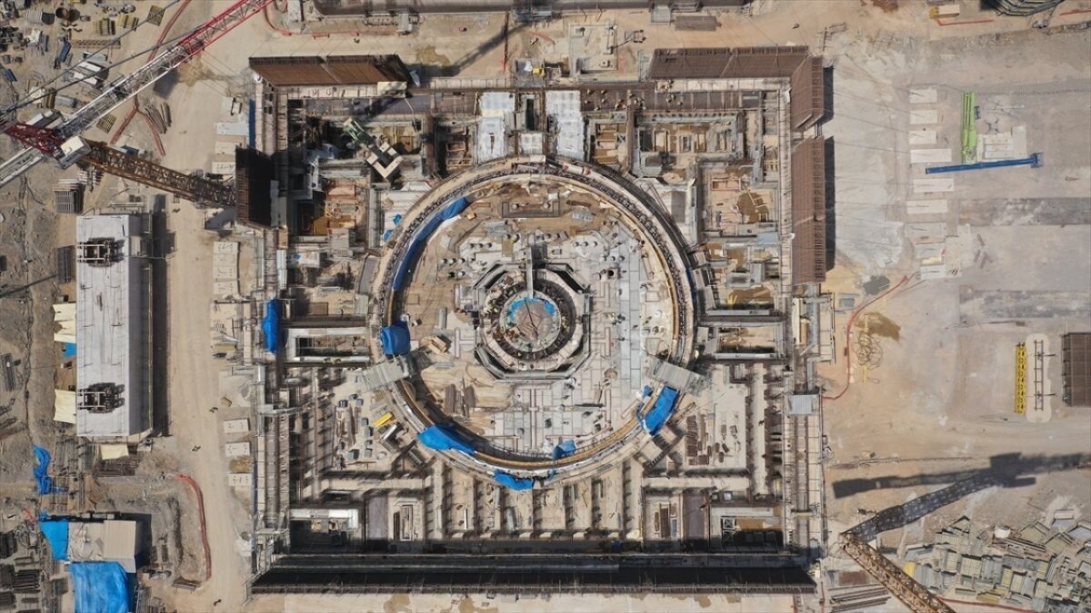 4. ünitenin reaktör binası inşası, türbin binası, yardımcı reaktör binası ve diğer ana tesislerinin inşası için başlayan çukur kazma çalışmaları, 655 metrekarelik bir alan üzerinde yapılıyor.