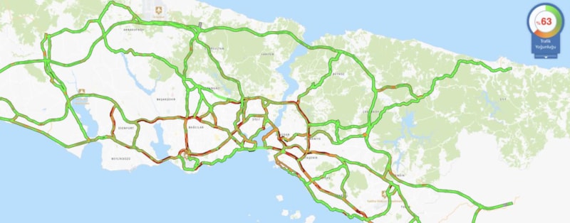 Sabah saatlerinde yüzde 70'in üzerinde görülen trafik yoğunluğu saat 12.15 itibarıyla ise yüzde 63 civarında seyrediyor.