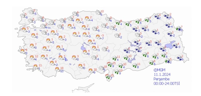 11 Ocak Perşembe günü hava durumu