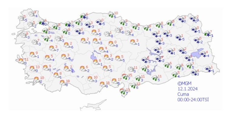 12 Ocak Cuma günü hava durumu
