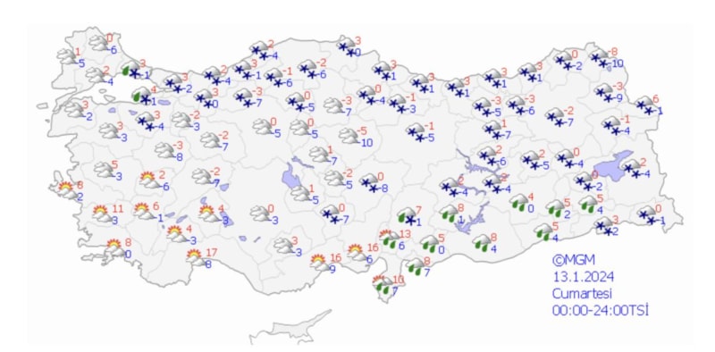 13 Ocak Cumartesi günü hava durumu