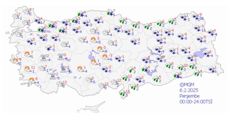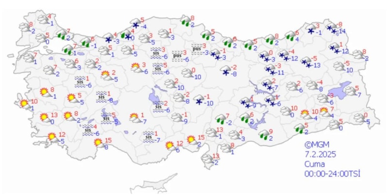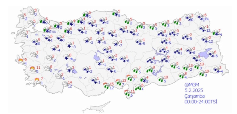 Kar yağışlarının 7 Şubat Cuma sabahı itibarıyla hafif yağmura dönüşmesi beklenirken, sıcaklıkların 5-7 derece civarında kış değerlerinde kalmaya devam edeceği belirtildi.