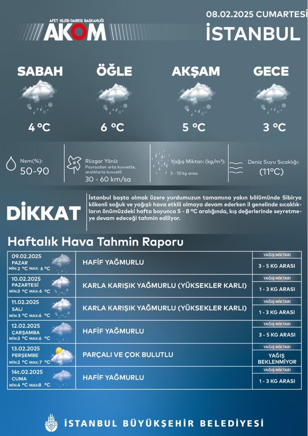 İstanbul Büyükşehir Belediyesi Afet Koordinasyon Merkezi, sağanak yağışlı geçmesi beklenen hafta sonunun ardından İstanbullulara yeni bir kar uyarısında daha bulundu.