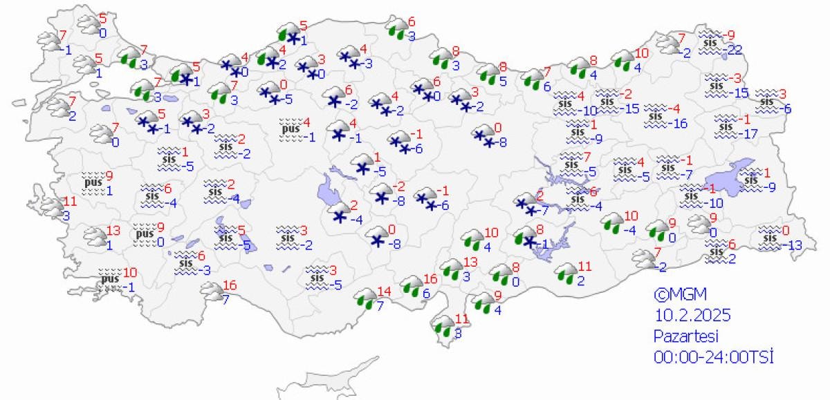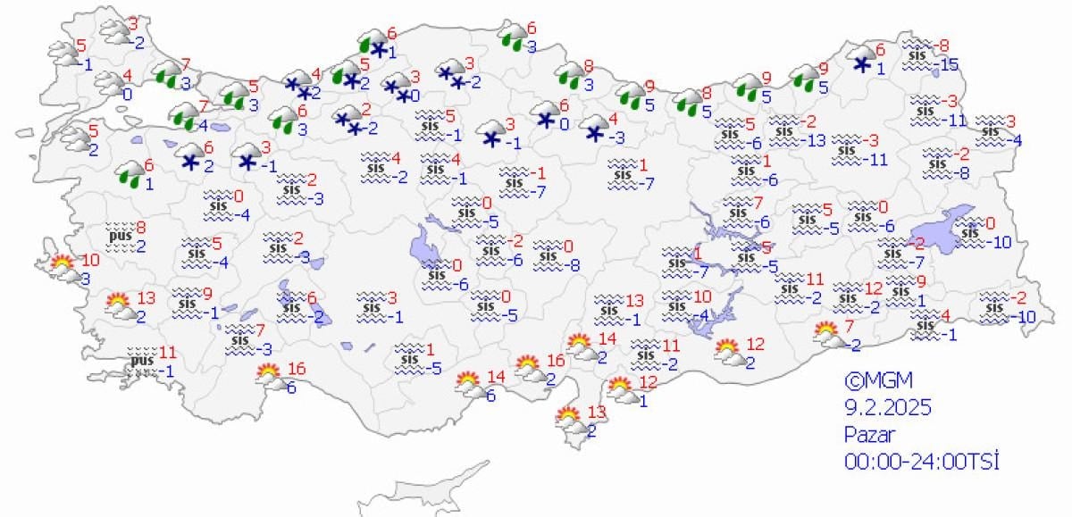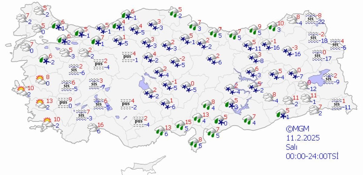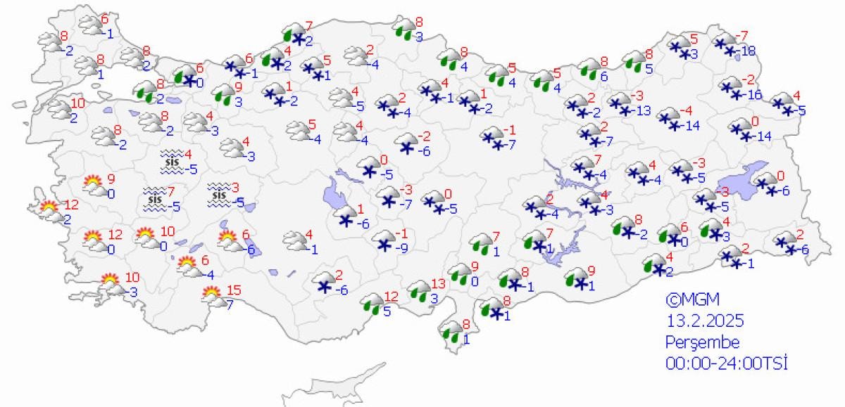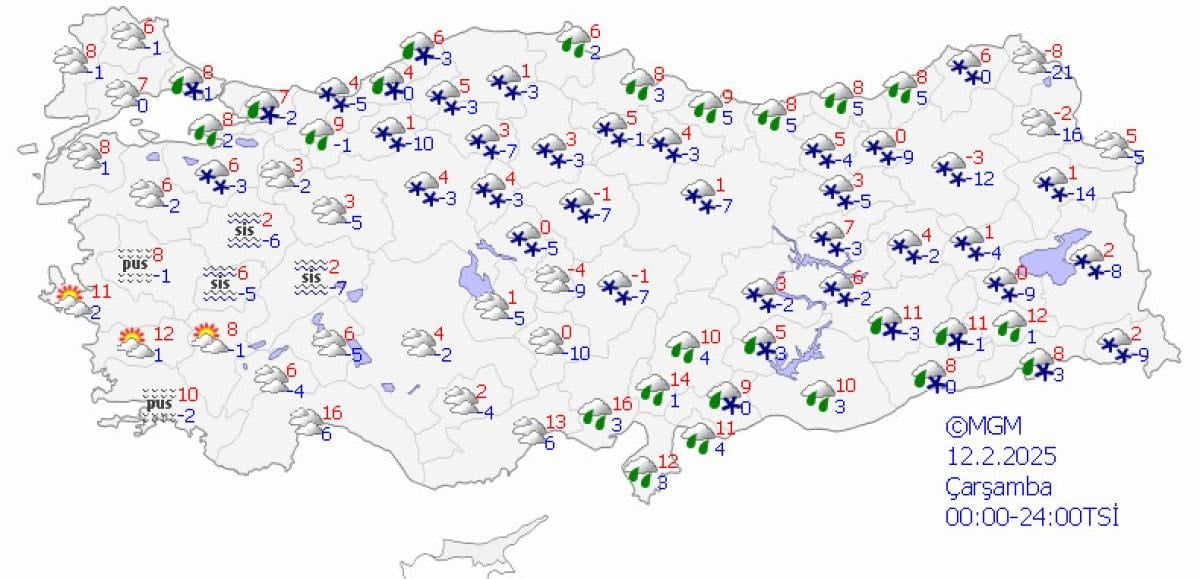 Yağışların Orta ve Doğu Karadeniz kıyıları ile İstanbul çevrelerinde yağmur; yağış alan diğer yerlerde karla karışık yağmur ve kar şeklinde olması bekleniyor.