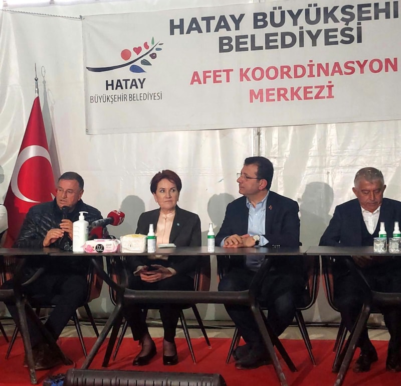 İyi Parti Genel Başkanı Meral Akşener, depremde büyük yıkımın yaşandığı Hatay'da, İstanbul Büyükşehir Belediyesi'nin oluşturduğu Koordinasyon Birimi'ni ziyaret etti.