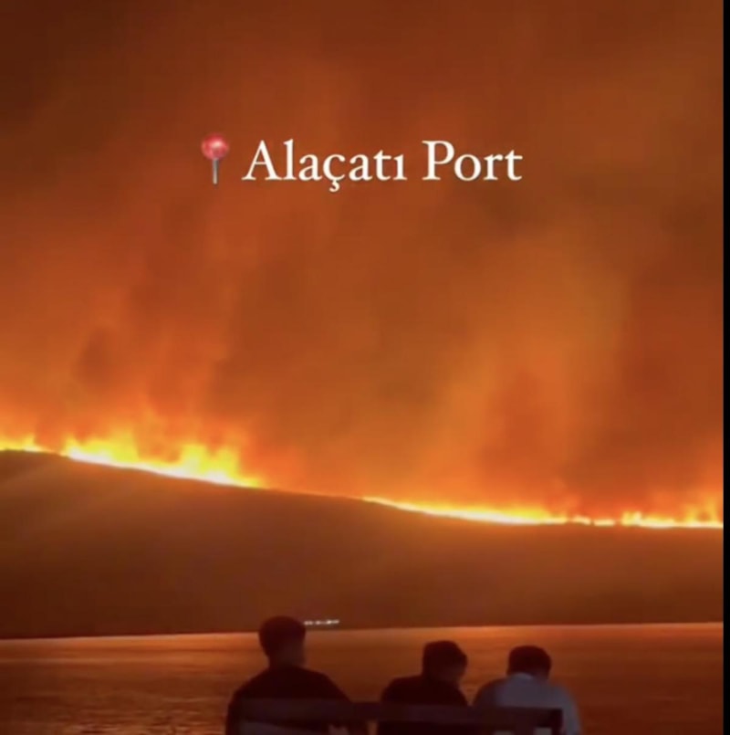 Dün gece Alaçatı'daki yangını görüntüleyen vatandaş, şaşkınlığını gizleyemedi.
