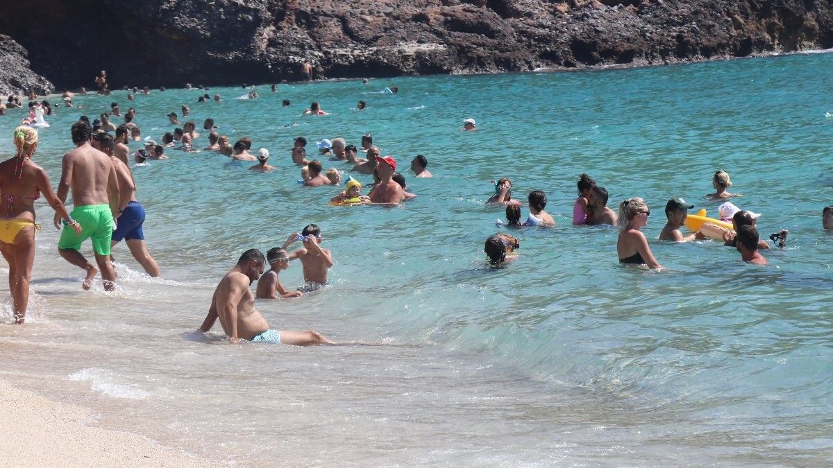 Her yıl yerli ve yabancı turist akınına uğrayan Alanya ilçesindeki Kleopatra plajı doldu taştı.