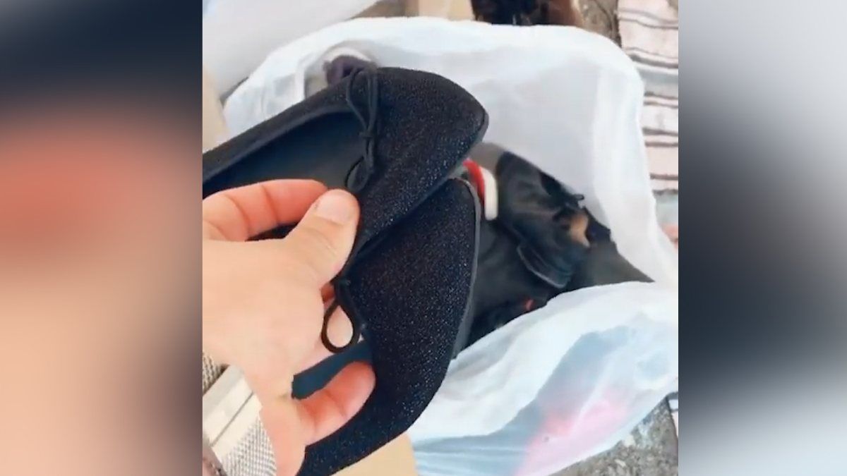 Vatandaşın kamerasına yansıyan anlarda yangından zarar gören vatandaşlara topuklu ayakkabı gönderildiği görülüyor.