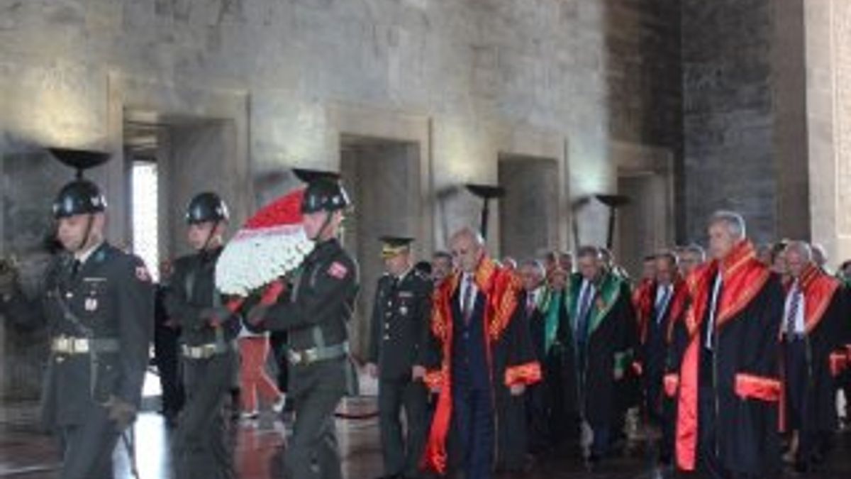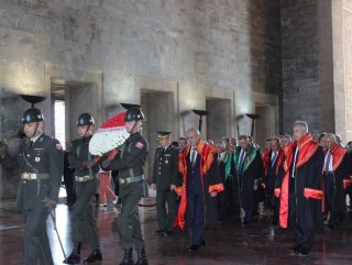 Beraberindeki heyetle Aslanlı Yol’dan yürüyerek Anıtkabir’e gelen Yargıtay Başkanı Alkan, Mustafa Kemal Atatürk’ün mozolesine çelenk bıraktı. Burada bir dakikalık saygı duruşunda bulunan Alkan, Anıtkabir önünde hatıra fotoğrafı çektirdi.