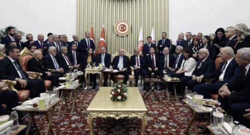 Geçtiğimiz günlerde Meclis resepsiyonundan bir kare fotoğraf geldi, ülke gündeminin tam ortasına oturdu. Muhalefet liderlerinin Cumhurbaşkanı'yla birlikte görüntülendiği bir fotoğraf, ana muhalefet medyası tarafından öfkeyle yayıldı. Aman Allah’ım, ne küfürler, ne hakaretler… Akıl alacak gibi değil.