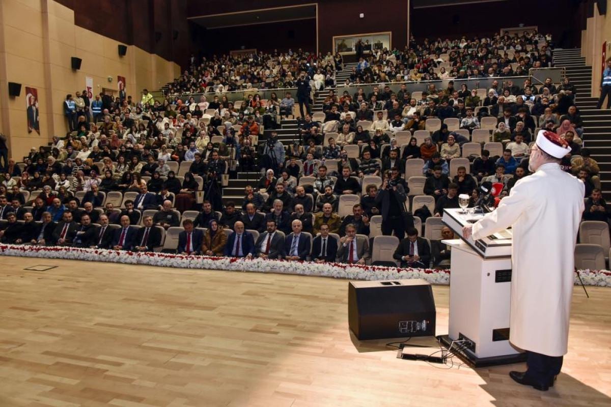 Saygı duruşu ve İstiklal Marşı’nın okunmasıyla başlayan program Ahmet Hamdi Akseki Cami İmam-Hatibi Mansur Sağır'ın Kur'an-ı Kerim tilaveti ile devam etti. Programda kendisini dinlemeye gelen gençlere bilimsel gelişme yolunda çok çalışmaları tavsiyesinde bulunan Diyanet İşleri Başkanı Erbaş, İsrail’in Gazze’ye yönelik saldırıları ve son olarak ilk uçuşunu gerçekleştiren milli savaş uçağı KAAN ile ilgili de açıklamalarda bulundu.