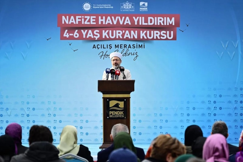 Diyanet İşleri Başkanı Ali Erbaş, Pendik Ahmet Yesevi Mahallesi'nde yapımı tamamlanan "Nafize Havva Yıldırım 4-6 Yaş Kur'an Kursu"nun açılışı dolayısıyla düzenlenen törene katıldı.