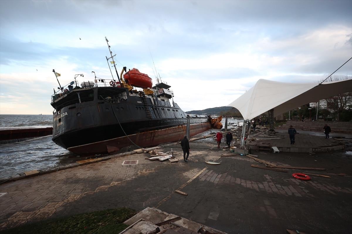 Yabancı bayraklı bir geminin yaşadığı sıkıntıyı da anlatan Uraloğlu, "O da sahile gelip birkaç defa çarptıktan sonra bölündü ancak içindeki mürettebat, Afet ve Acil Durum Yönetimi Başkanlığı, itfaiyenin, Kıyı Emniyetinin ve o bölgedeki kurtarma ekiplerinin müdahaleleriyle sağ salim çıkarıldı. Orada çok şükür bir can kaybımız yok. An itibarıyla da arama kurtarma çalışmaları sürdürülüyor." dedi.