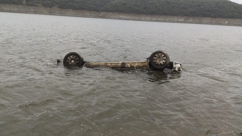 Bir süre önce baraja gömülen 2 araç da su yüzeyine çıktı.