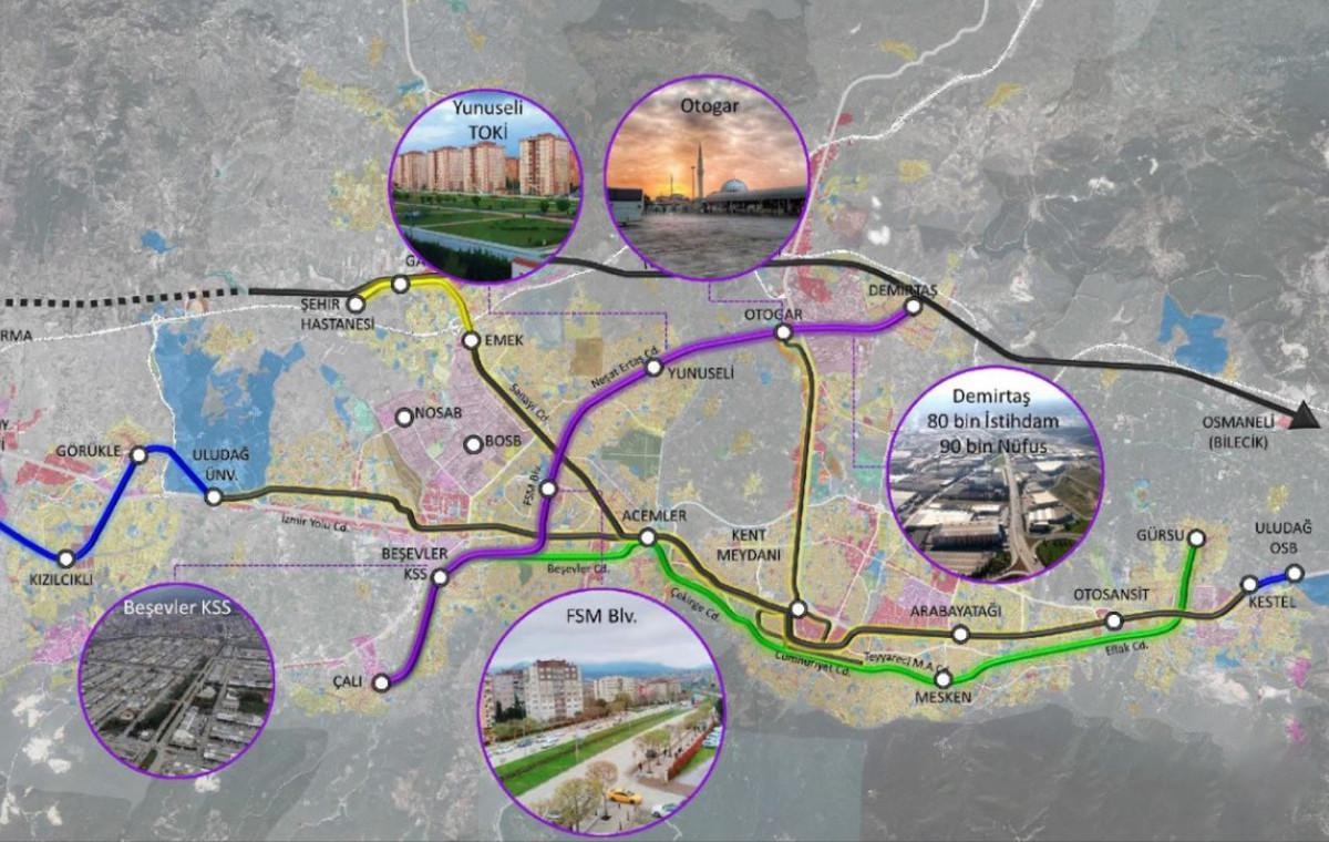 Bursaray hattımızda yaptığımız sinyalizasyon optimizasyonuyla hattın kapasitesini yüzde 60 arttırdık. Bu açıdan baktığımızda mevcut hattımıza yaklaşık 25 kilometrelik yeni bir hattın taşıdığı kadar kapasiteyi ilavesi yapmış olduk. Yine geçtiğimiz dönemde 9 kilometrelik Kent Meydanı-Terminal arasındaki tramvay hattımızı işletmeye aldık. Çevresini kentsel dönüşümle değiştirmeye başladığımız İstanbul Caddesi’ni raylı sistem taşımacılığıyla buluşturduk. Yapımı Ulaştırma ve Altyapı Bakanlığımızca devam eden 4,6 kilometrelik Emek-Şehir Hastanesi uzatma hattının ilk istasyonunu hizmete alıyoruz. Bu hatla raylı sistem ağımızı Yüksek Hızlı Tren Bursa Garı ve Şehir Hastanesi’yle buluşturuyoruz. Çalışmalarını başlattığımız ve önümüzdeki dönemde tamamlayacağımız diğer uzatma hattımız da Üniversite-Görükle-Kurtuluş Hattı olacak. 5,4 kilometre uzunluğa sahip ve üç istasyonda oluşan bu hat ile üniversiteden Görükle merkeze raylı sistemle erişimi sağlıyoruz. Ayrıca Kurtuluş bölgesindeki gelişen yerleşim alanlarını metroyla buluşturuyoruz. 2035 yılı Ulaşım Master Planımızda yer alan Çalı-Demirtaş metro hattına önümüzdeki dönem de başlıyoruz. Kuzey güney yönünde ilk olma özelliği taşıyan 22 kilometre uzunluğuyla toplam 16 istasyondan oluşan hattımız, sanayisi ve yoğun nüfusu olan Çalı bölgesinden başlayarak Beşevler-Fatih Sultan Mehmet Bulvarı-Yunuseli üzerinden Bursa Terminali’ne ulaşacak. Yine sanayi ve yoğun nüfus barındıran Demirtaş’a hızlı ve konforlu bir şekilde erişimi sağlayacak. Böylelikle ilk kez kuzey güney aksındaki yatırımı gerçekleştirmiş olacağız. Önümüzdeki dönem sonunda toplam raylı sistem hattımızı 89 kilometreye ulaştırarak, toplu taşımada önemli bir dönüşümü gerçekleştireceğiz. Dersimize gerçekten çalıştık. Ayaklar üzerine basan projeleri paylaşıyoruz.