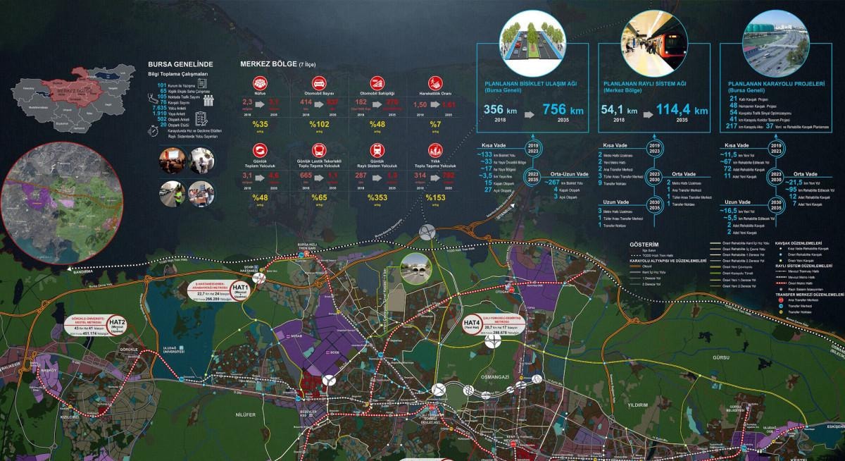 Tabi birbirine bağlantı yollarıyla beraber Bursa trafiği artık üçe bölünecek. Dolayısıyla en basit tabirle trafik yükümüz yaklaşık 3 kat hafiflemiş olacak. 30-40 senedir konuşulan Güney Çevre Yolu’nun üzerine ilave Kuzey Çevre Yolu da inşallah hayat bulmuş olacak. Bu oluşturduğumuz iki koridorun sağladığı rahatlığa ilave olarak Ulaştırma ve Altyapı Bakanlığı’mız tarafından yapılacak Kuzey Otoyolu Bursa trafiğini rahatlatmada önemli bir rol üstlenecek. İstanbul-İzmir Otobanının Ovaakça-Badırga kesimi kuzeye alınarak yeni bir otoyol güzergahı oluşturulacak. Hali hazırda kullanılan otoyolun Çevre Yolu olarak Bursa şehir içi trafiğine hizmet vermesi sağlanacak. Yol, Büyükşehir Belediyesi’ne devredilecek. Böylece bu güzergâha yapılacak olan bağlantı yollarıyla beraber şehir içi trafiğinde önemli ölçüde rahatlama ve alternatifler oluşacak. Oluşturduğumuz bu yol ağının maksimum verimlilikte çalışması için köprü, kavşak ve bağlantı yolları projelerimizi de hazırladık. Bunlar, Mudanya Yolu-Şehir Hastanesi arası bağlantı yolu ve kavşak düzenlemeleri, Bademli Bulvarı, Geçit Köprüsü genişletme, Ata Bulvarı üzerine iki kavşak, Görükle Köprülü Kavşağı, İhsaniye-Yeni Karaman bağlantı köprüsü, Orhaneli Yolu’na iki kavşak ve Botanik Park Kavşağı. Otopark kapasitesini farklı alanlarda yapacağımız toplamda 50 bin araçlık otopark yatırımıyla üst seviyeye taşıyoruz.