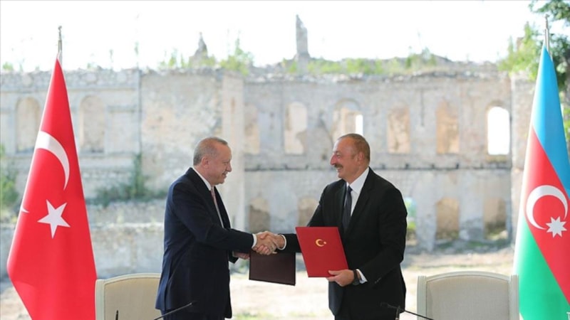 Şuşa'nın işgalden kurtarılmasının ardından kendisini ilk kutlayan kişinin de Erdoğan olduğunu dile getiren Aliyev, "Eğer bugün ülkemizle ilgili herhangi bir ciddi konu olursa tabii ki ilk arayacağım ve bilgilendireceğim kişi kardeşim Recep Tayyip Erdoğan olur." ifadelerini kullandı.