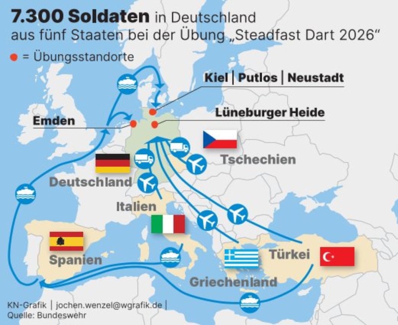 Tatbikat kapsamında çok sayıda asker, zırhlı araç, tank, roket sistemleri ve lojistik ekipmanları farklı Avrupa ülkelerinden Almanya’ya taşınırken, Türkiye de TSK bünyesinde kara birliklerinin yanı sıra donanmaya ait dört gemi ile tatbikatta boy gösteriyor.