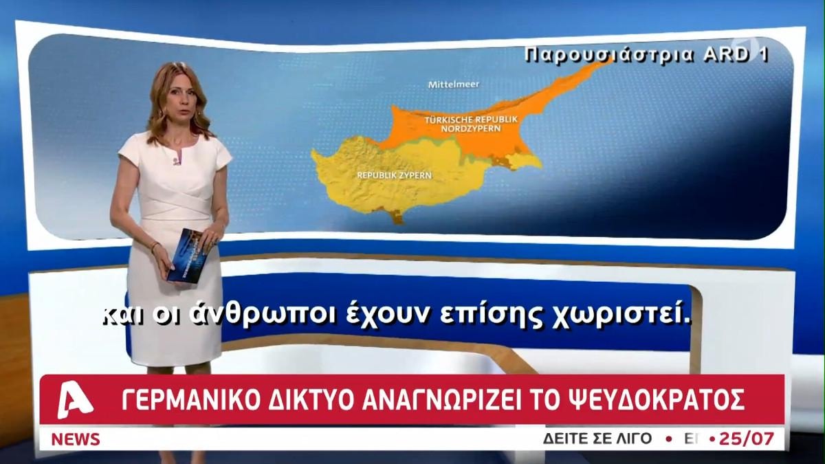 Yunan kanalı, ARD'nin KKTC'yi tanımasına ve Tahsin Ertuğruloğlu'nu KKTC Dışişleri Bakanı olarak anmasına tepki gösterdi.