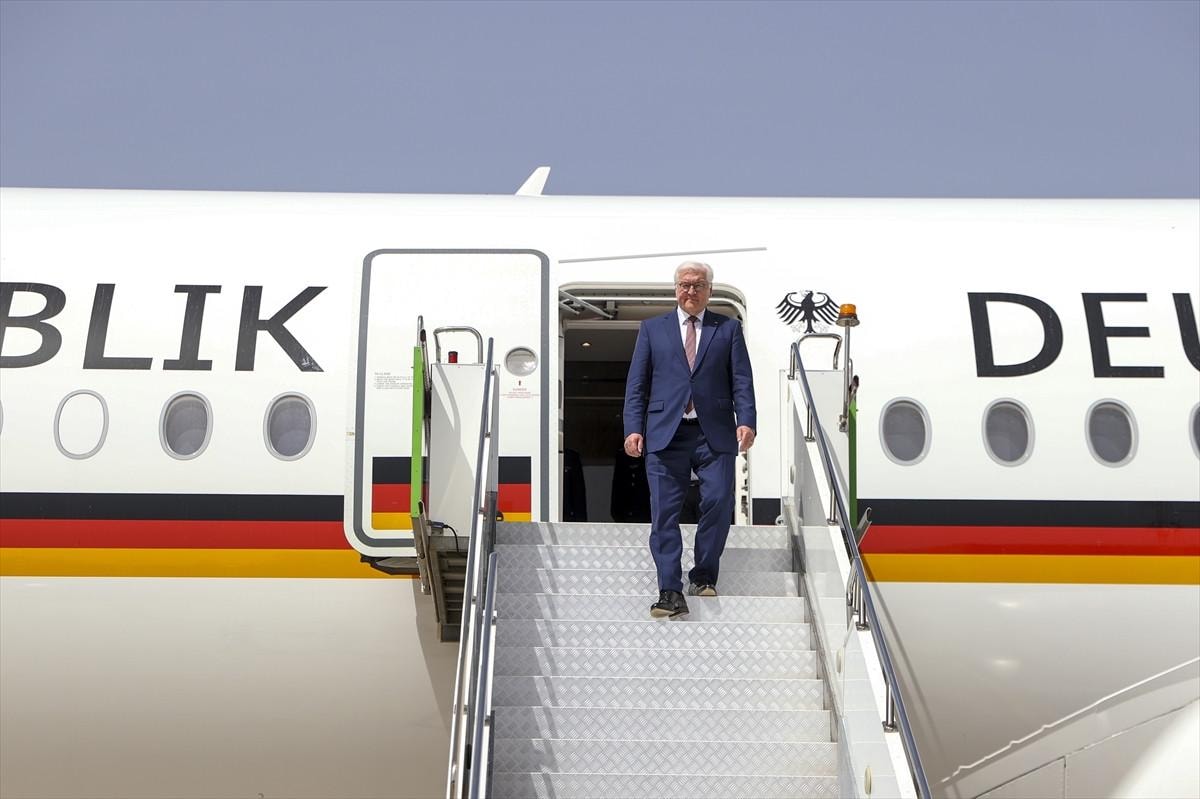 Almanya Cumhurbaşkanı'nı Gaziantep Havalimanı'nda Gaziantep Valisi Kemal Çeber, Gaziantep Büyükşehir Belediye Başkanı Fatma Şahin, 5. Zırhlı Tugay Komutanı Tuğgeneral Erdin Kaya ve diğer yetkililer karşıladı.