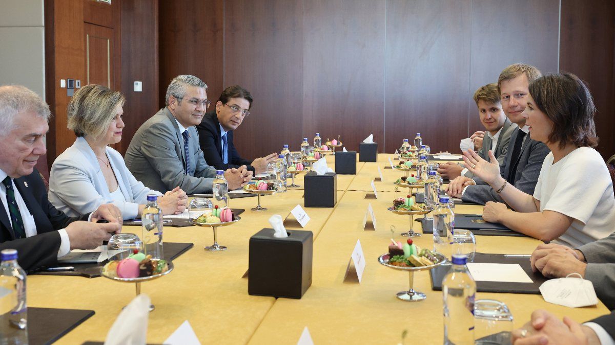 AA'nın haberine göre dün Dışişleri Mevlüt Çavuşoğlu ile görüşen ve ortak basın toplantısında Çacuşoğlu'nun açıklamalarının gündeme damga vurduğu iktidar temaslarının ardından Baerbock, bugün muhalefet heyetlerini kabul etti