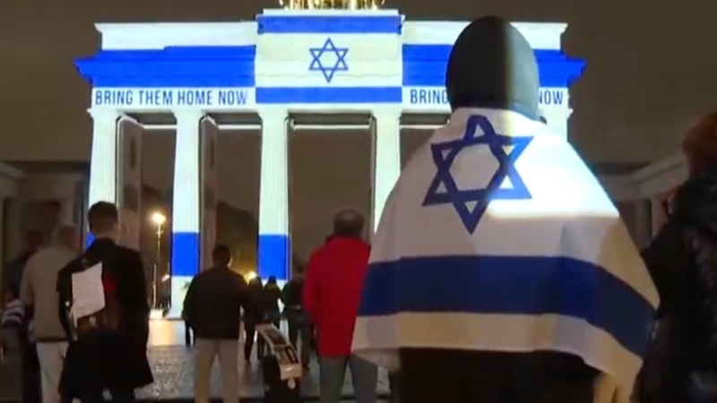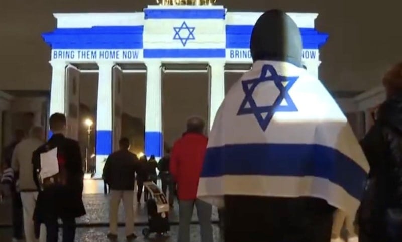 Halk bu duruma direnerek Gazze'deki katliama seslerini çıkartmaya çalıştıkları sırada ise kentin simge yapılarından olan Brandenburg Kapısı'nın dış yüzeyine, İsrail bayrağı yansıtıldı.