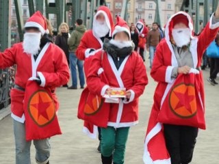 Noel baba kıyafetleri giyen sempatizanlar, terör örgütü PKK lehinde propaganda yaptı, el bildirileri dağıttı.