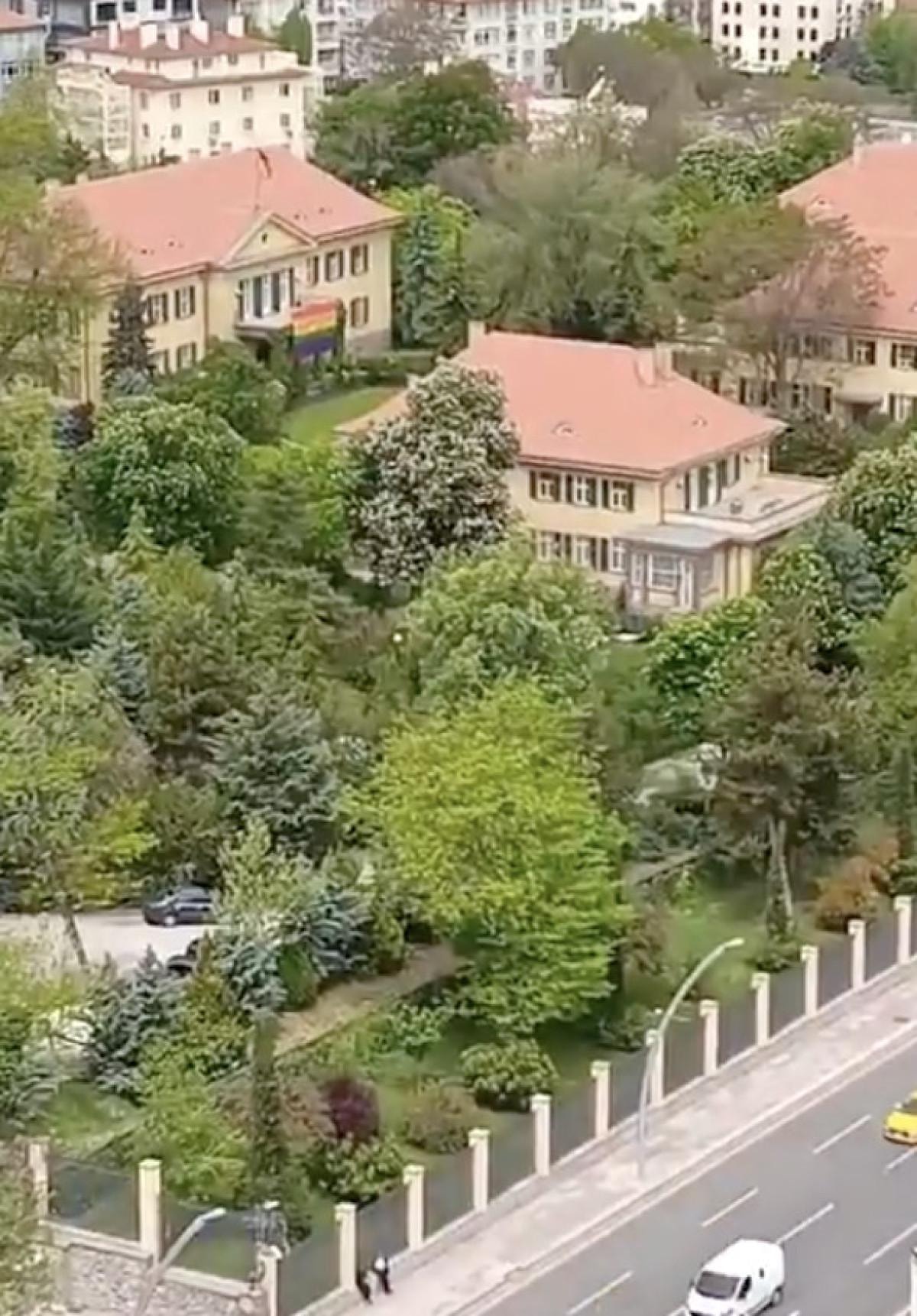Almanya'nın Ankara Büyükelçiliği'ne LGBT flaması asıldı.