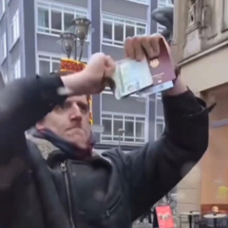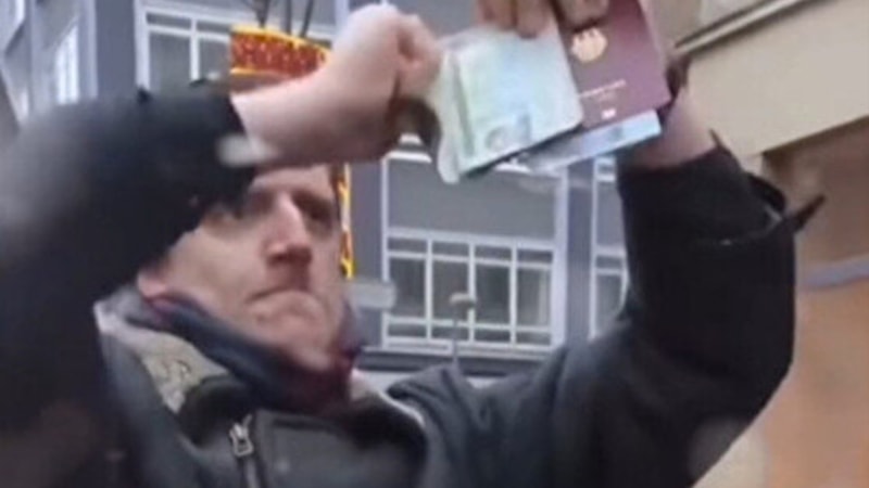 Almanya'da Filistinlilerle dayanışma için düzenlenen yürüyüşte bir adam, ülkesinin savaş suçlusu İsrail'e desteğine tepkisini göstermek için pasaportunu yırttı.