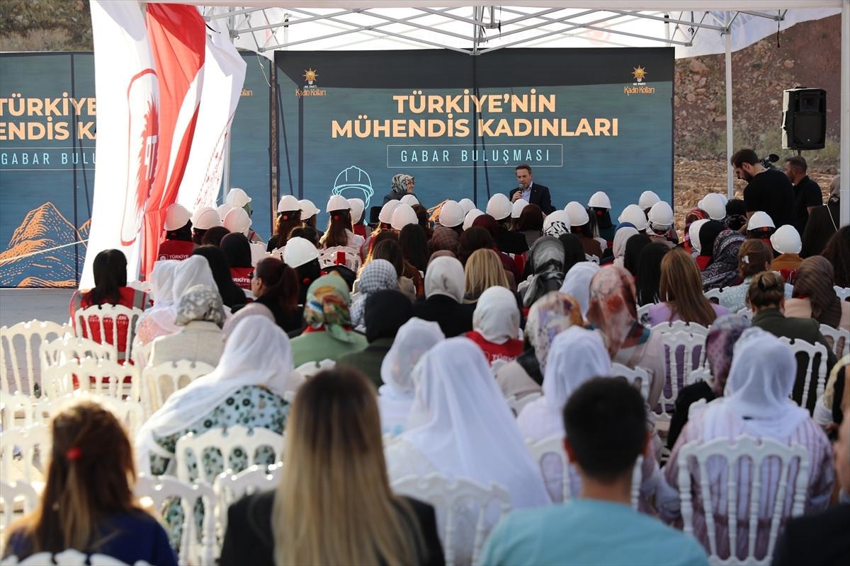 Enerji ve Tabii Kaynaklar Bakanı Alparslan Bayraktar, AK Parti Genel Merkez Kadın Kolları Başkanı Tuğba Işık Ercan'ın öncülüğünde Türkiye'nin farklı illerinden gelen 73 kadın mühendisle Gabar'daki Şehit Esma Çevik-1 üretim kuyusunda bir araya geldi.