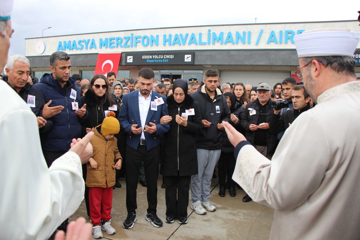 Şehit askerlerin Türk bayrağına sarılı naaşlarını taşıyan askeri uçak, Amasya Merzifon Havalimanı'na indi.