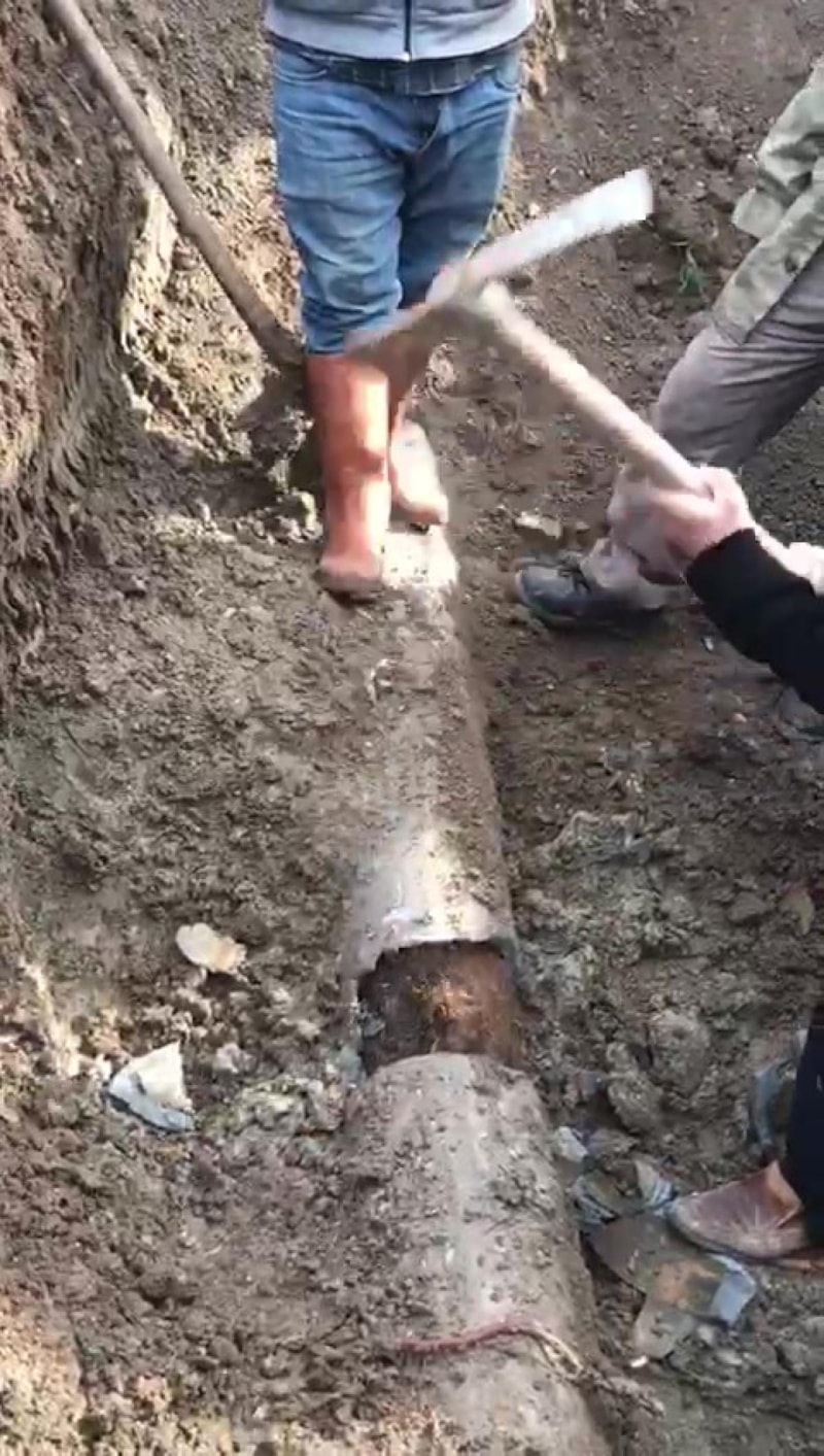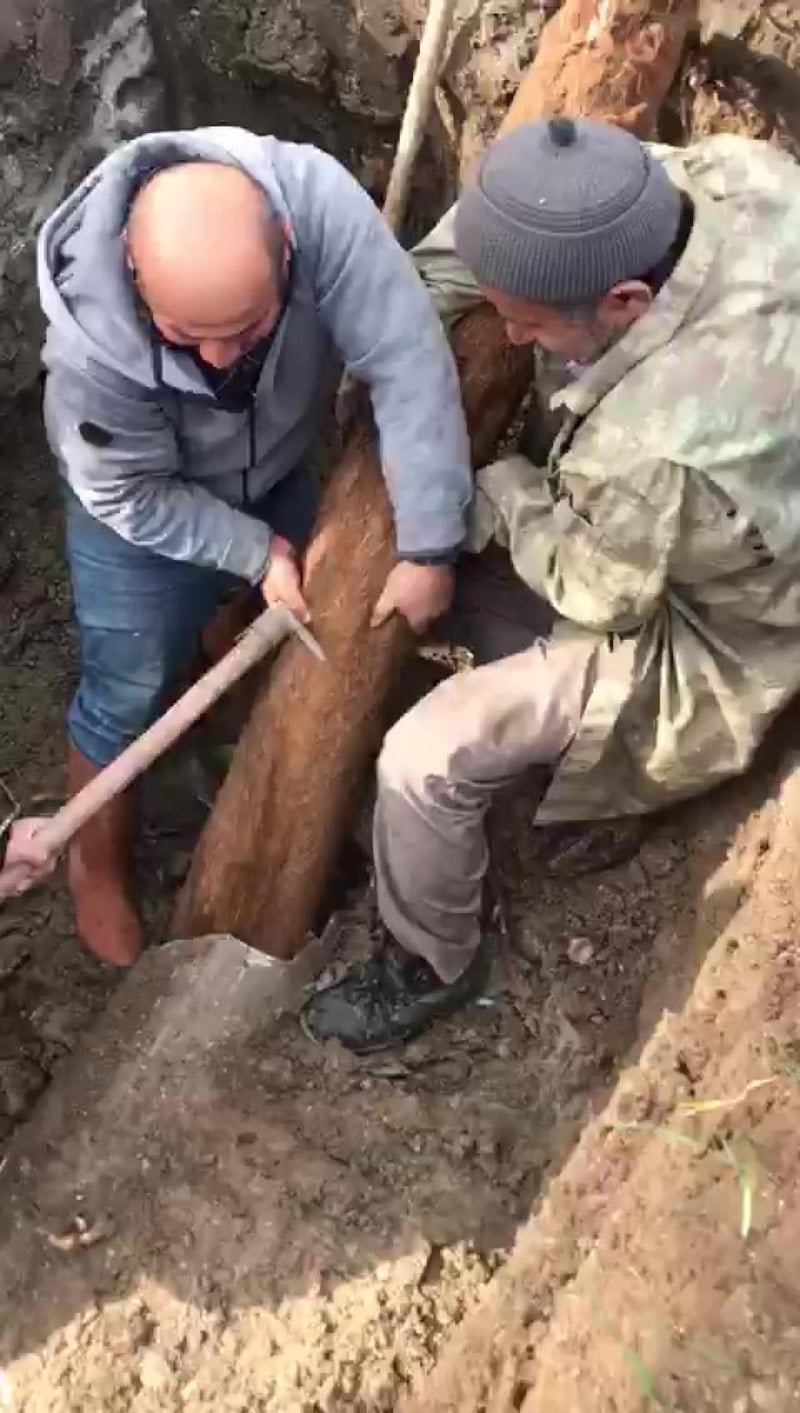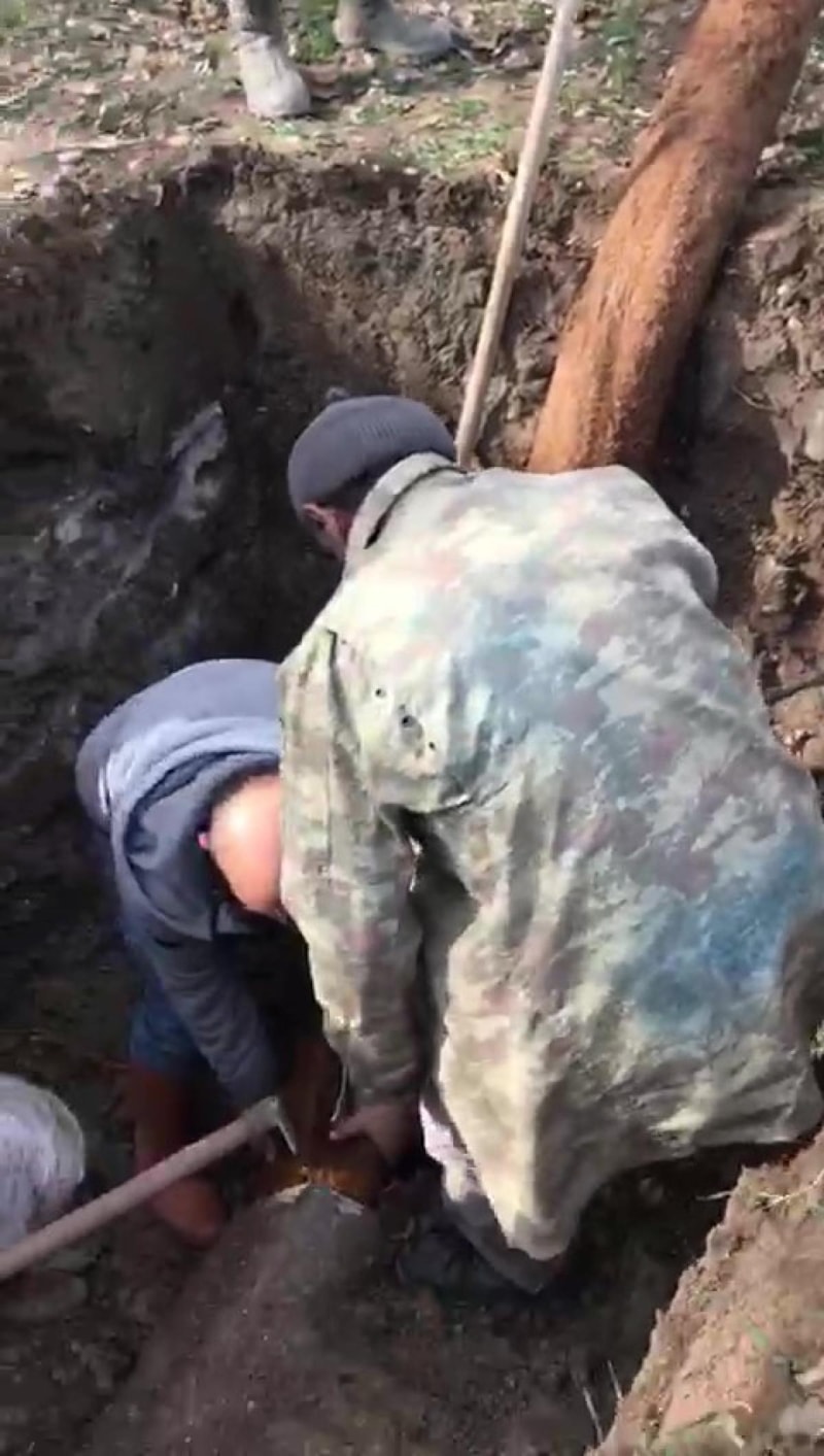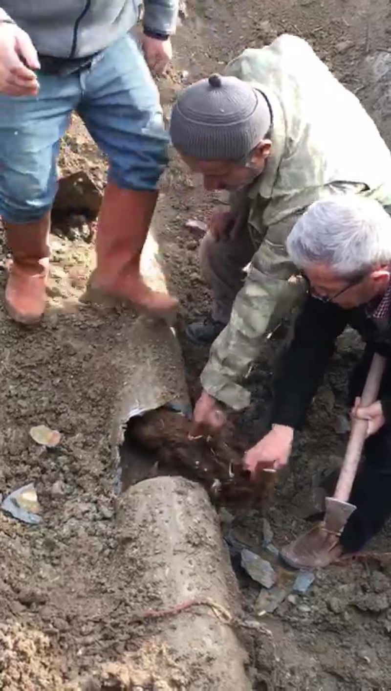 Sonra beton boruyu kazmayla kıran köylüler içini kaplayan ağaç köküyle karşılaştı.
