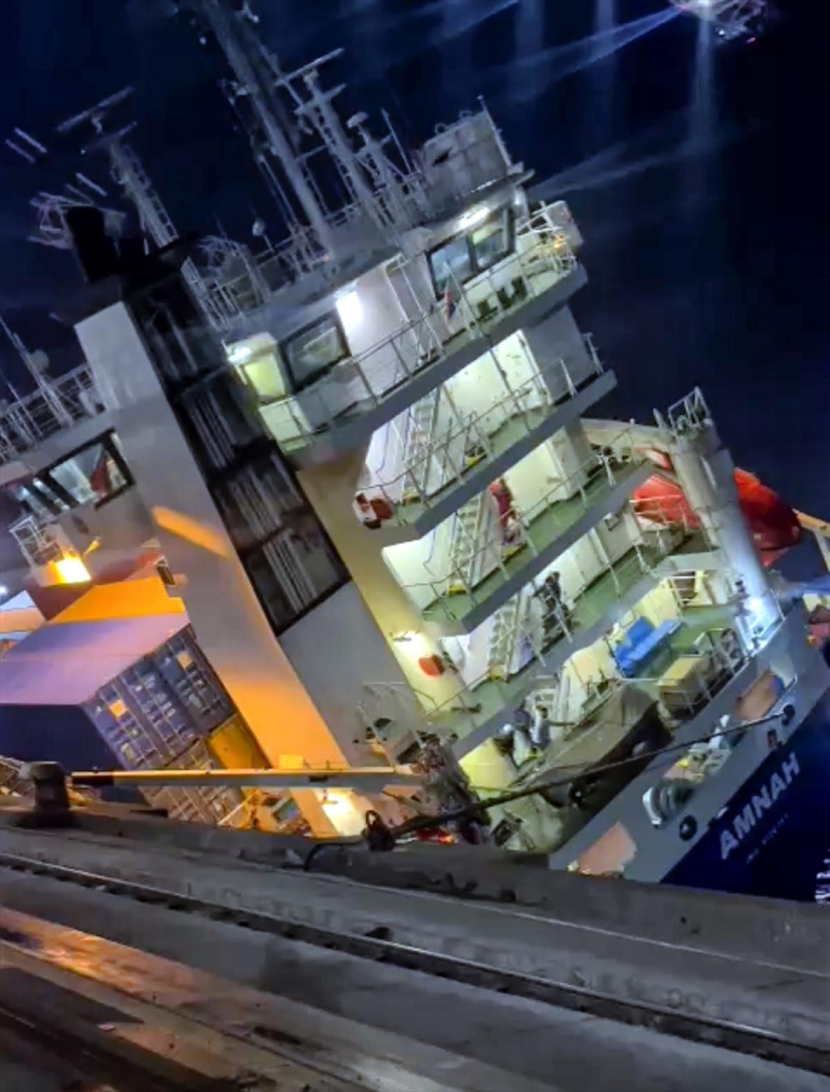 İstanbul Valiliğinden yapılan açıklamaya göre, Ambarlı Limanı'nda gece saat 04.00 sıralarında Komor Adası bandıralı ANMAH isimli kuru yük gemisi, yan yattı.