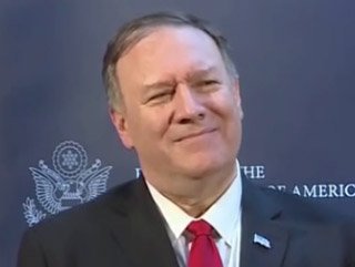 ABD Başkan Yardımcısı Mike Pence tarafından açıklanan kararlar sırasında Dışişleri Bakanı Mike Pompeo'nun, neşeli olduğu görüldü.