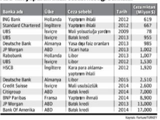 8 farklı ülkenin bankalarıyla hukuk mücadelesi veren Amerika, bu bankalara farklı tarihlerde toplam 60 milyar dolar para cezası kesmişti.