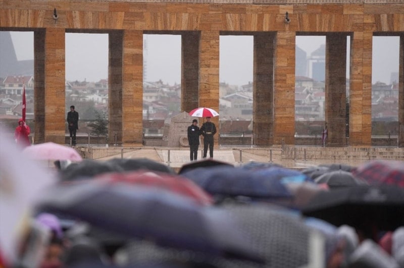 Her yıl olduğu gibi 23 Nisan'da Anıtkabir'de düzenlenen etkinliklere katılım bu yıl yağmur nedeniyle düşük kalırken ziyaretçi çocuklar ve etkinlikte görevli öğrenciler yağmur nedeniyle zor anlar yaşadı.
