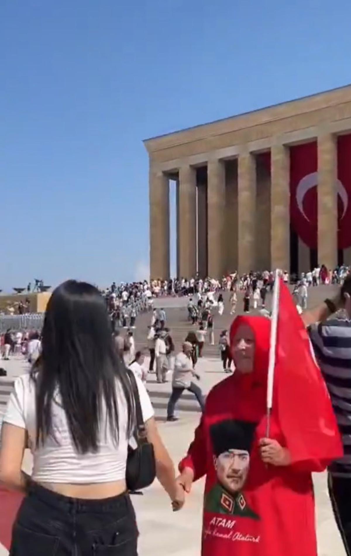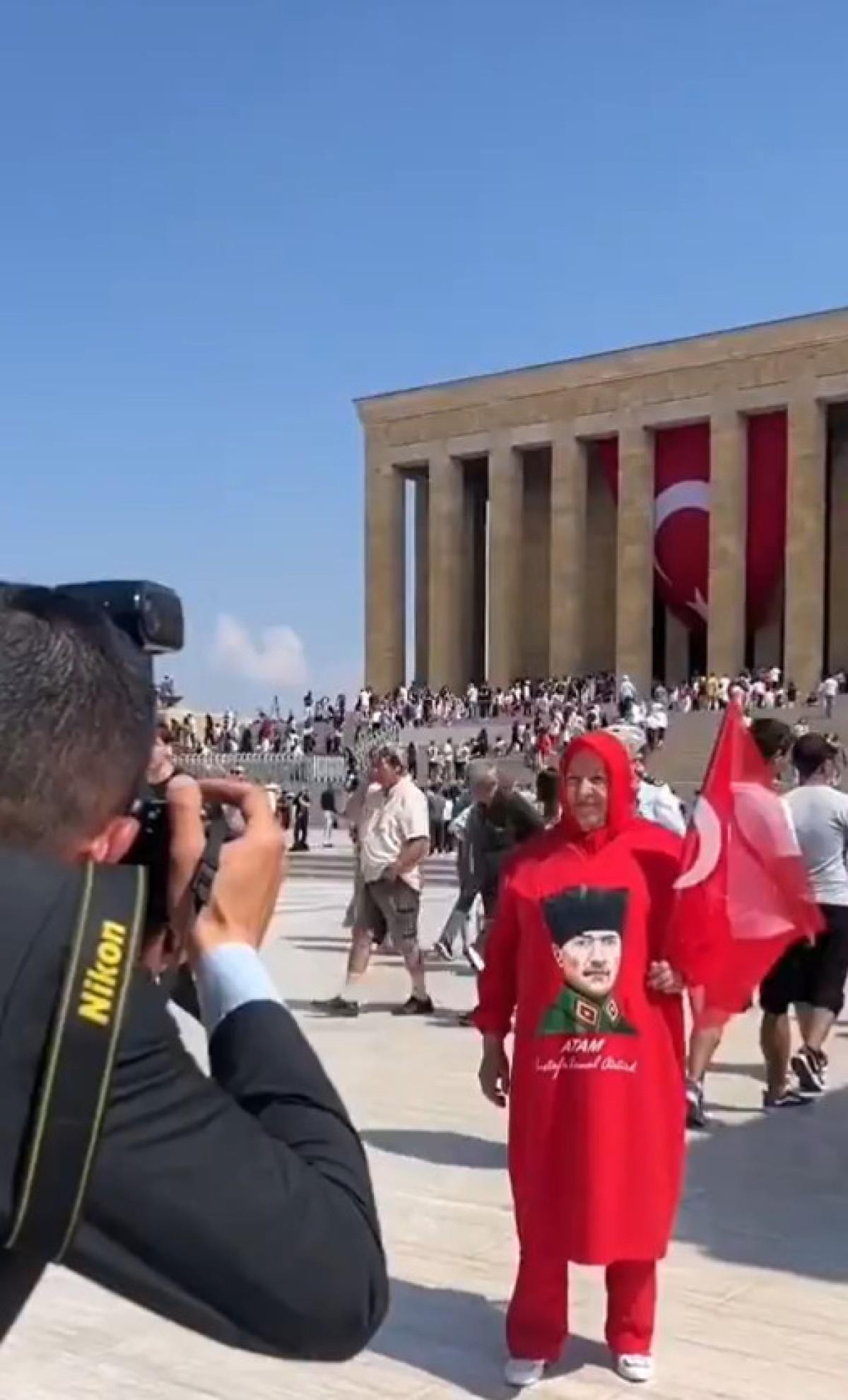 Anıtkabir'e gelenler arasında üzerinde ay-yıldızlı başörtü Atatürk fotoğraflı elbiseyle dolaşan bir kadının da olması çok konuşuldu.