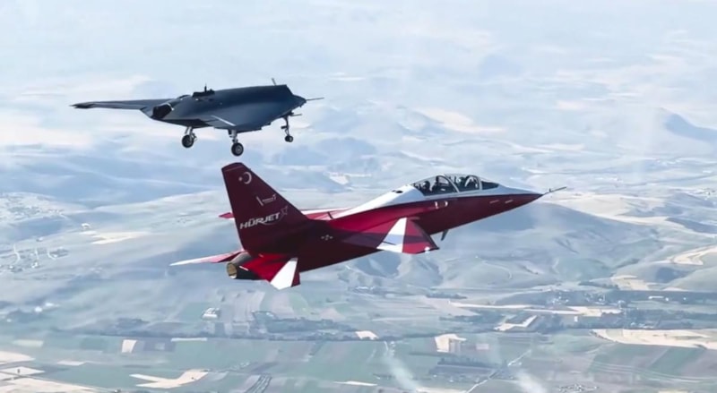 Türkiye'nin yerli ve milli insansız savaş uçağı ANKA-3 ile Türkiye'nin ilk jet motorlu süpersonik eğitim uçağı HÜRJET kol uçuşu gerçekleştirdi.