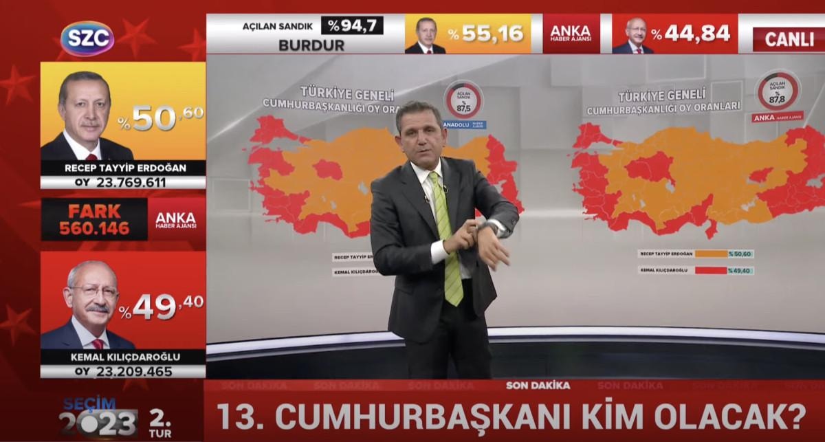 CHP'nin fonladığı Sözcü TV'de ise Fatih Portakal'ın sunumuyla seçim sonuçları aktarıldı.