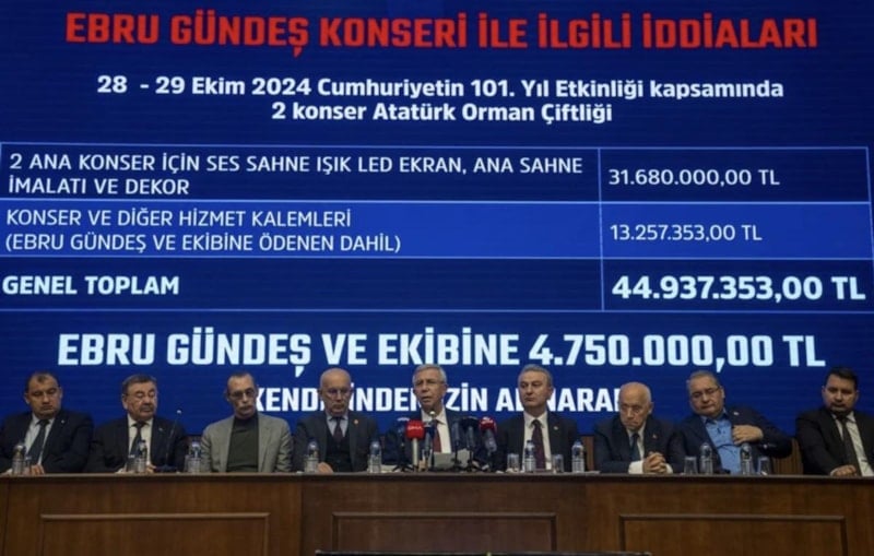 CHP'li Ankara Büyükşehir Belediyesi tarafından düzenlenen 69 milyon TL'lik Ebru Gündeş, 71 milyon TL'lik Mor ve Ötesi ve 80 milyon TL'ye Candan Erçetin konseri düzenlemesi tepkilerin odağına yerleşti.